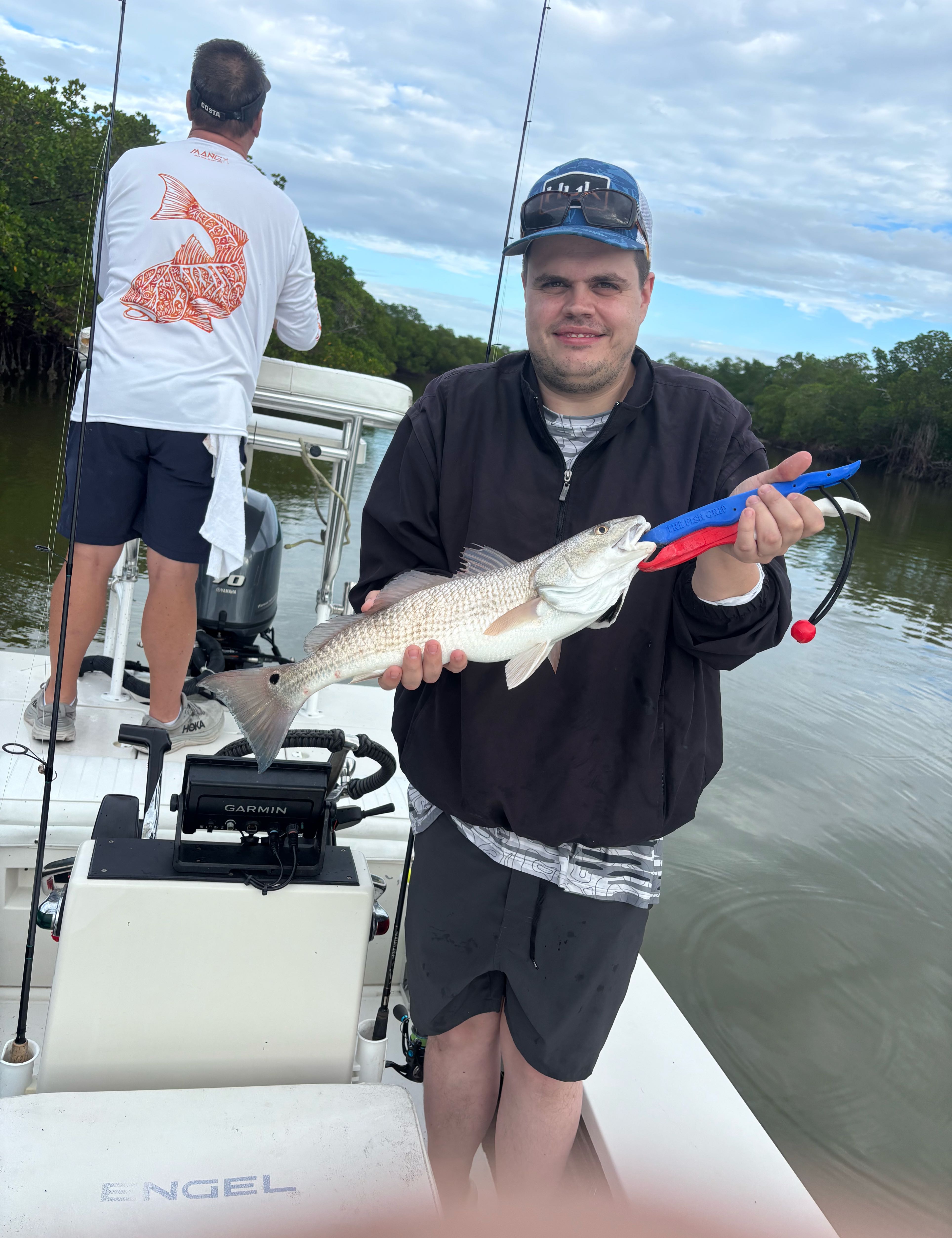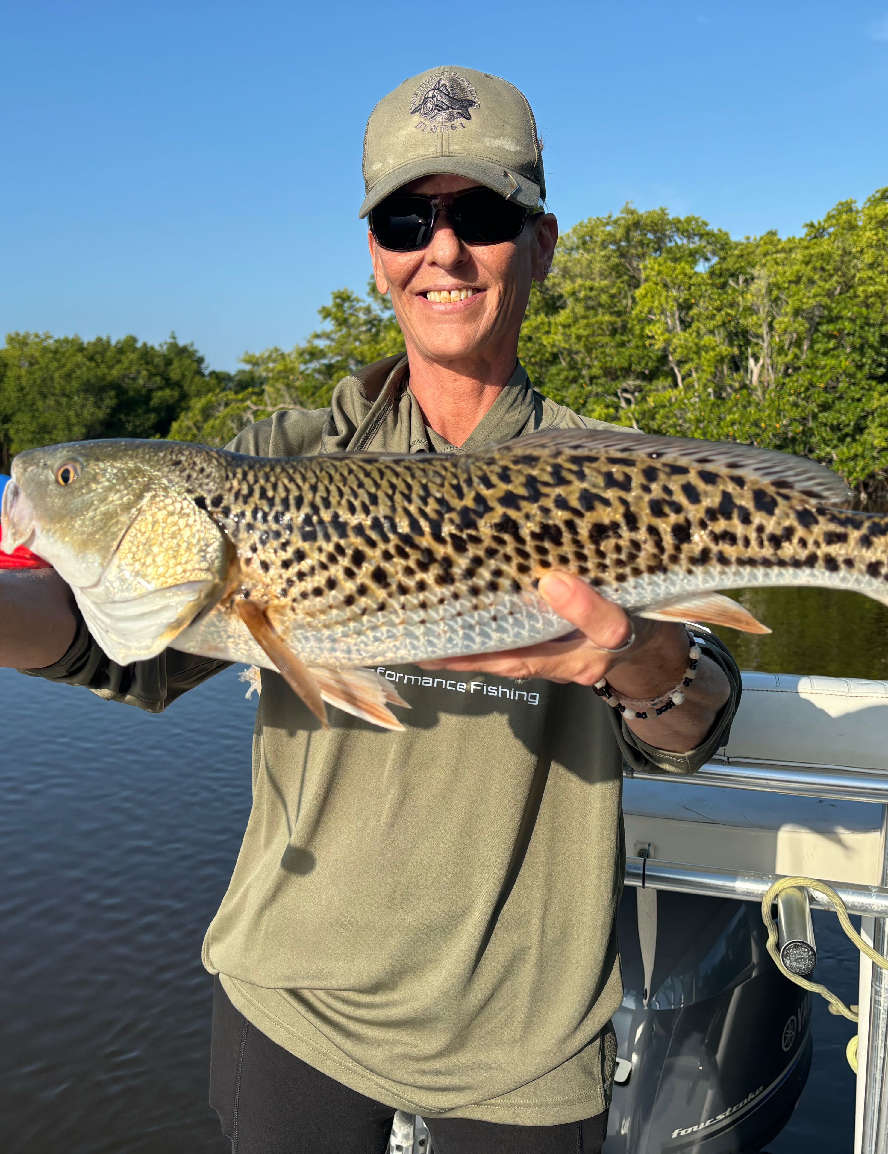 Goliath Grouper: True to their name, these monsters can grow over 800 pounds. We catch and release these gentle giants, usually found around structure in deeper channels. They're slow and steady fighters, but when they decide to dive, hold on tight!
